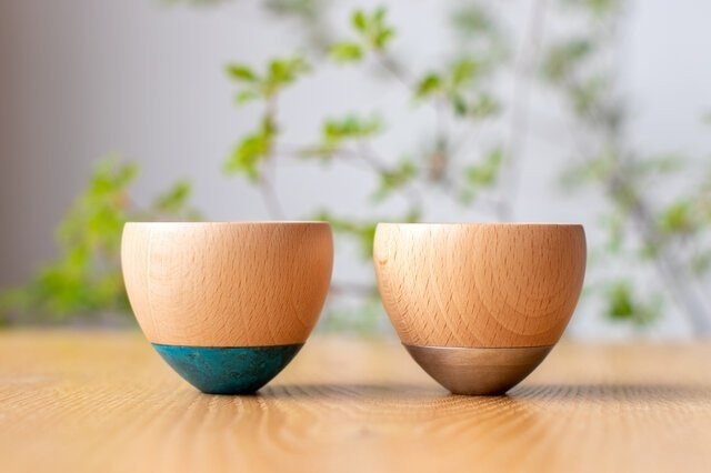天然木と真鍮を組み合わせたユニークなぐい呑みで、